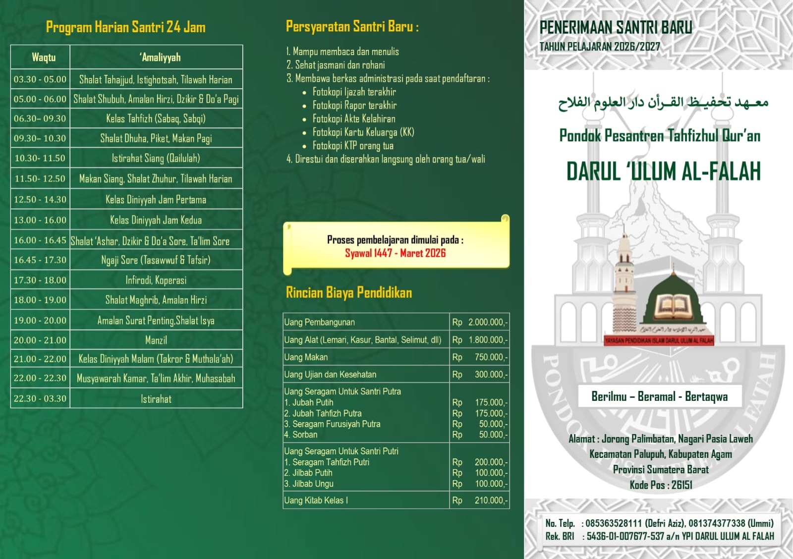 Langsung datang ke lokasi Pondok Pesantren Darul Ulum Al-Falah Palupuh atau hubungi panitia penerimaan santri baru;WA(085363528111)