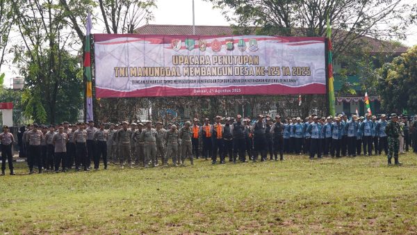 Bekasi, –Intelkriminal.co.id// Komandan Korem 051/Wijayakarta Brigjen TNI Nugroho Imam Santoso, S.E., M.M., mendampingi Pangdam Jaya/Jayakarta Mayjen TNI Deddy Suryadi, S.I.P., M.Si., menutup program TNI Manunggal Membangun Desa (TMMD) Reguler ke-125 Tahun Anggaran 2025 yang dilaksanakan di Lapangan sepak bola Kelurahan Pedurenan, Kecamatan Mustikajaya Kota Bekasi. Kamis, (21/8/2025) .