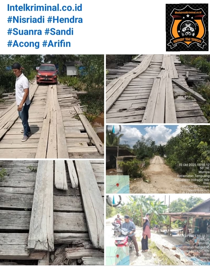 INHIL –Intelkriminal.co.id//_ Kondisi infrastruktur di Desa Mumpa, Kecamatan Tempuling, Kabupaten Indragiri Hilir (Inhil), Riau kini menjadi perhatian serius. Meski Indonesia telah 80 tahun merdeka, namun masyarakat Desa Mumpa merasa belum merasakan pemerataan pembangunan, terutama dalam hal perbaikan jalan dan jembatan yang menjadi akses utama warga.