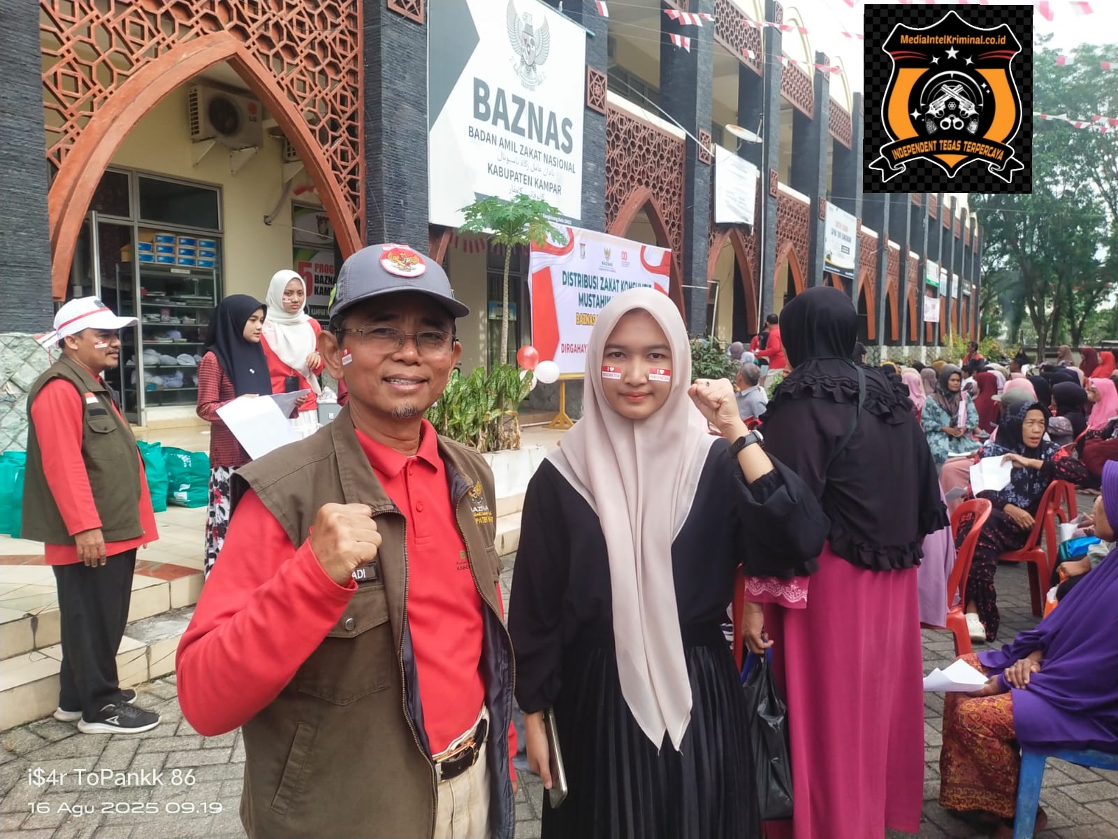 Bangkinang Kota –Intelkriminal.co.id// Badan Amil Zakat Nasional (BAZNAS) Kabupaten Kampar kembali menyalurkan zakat konsumtif kepada warga kurang mampu dalam kegiatan bertajuk Mustahik Merdeka. Acara ini digelar di Kantor BAZNAS Kampar pada Sabtu (16/8/2025) pukul 08.30 WIB.