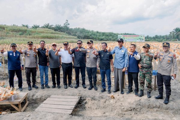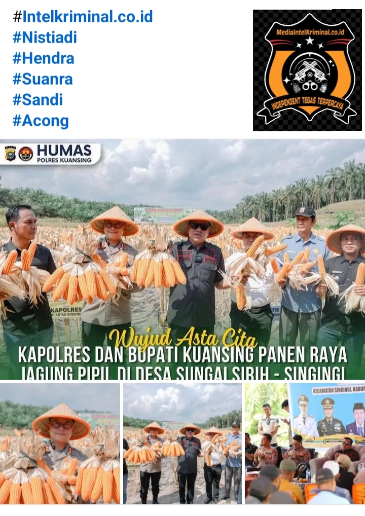 KUANTAN SINGINGI–Intelkriminal.co.id// Komitmen mendukung ketahanan pangan nasional terus diwujudkan oleh Pemerintah Kabupaten Kuantan Singingi bersama Polres Kuansing. Kapolres Kuansing AKBP Raden Ricky Pratidiningrat, S.I.K., M.H. bersama Bupati Kuansing Dr. H. Suhardiman Amby, A.K., M.M. menghadiri kegiatan Panen Raya Serentak Jagung Pipil Tahap I di Desa Sungai Sirih, Kecamatan Singingi, Sabtu (20/9/2025).