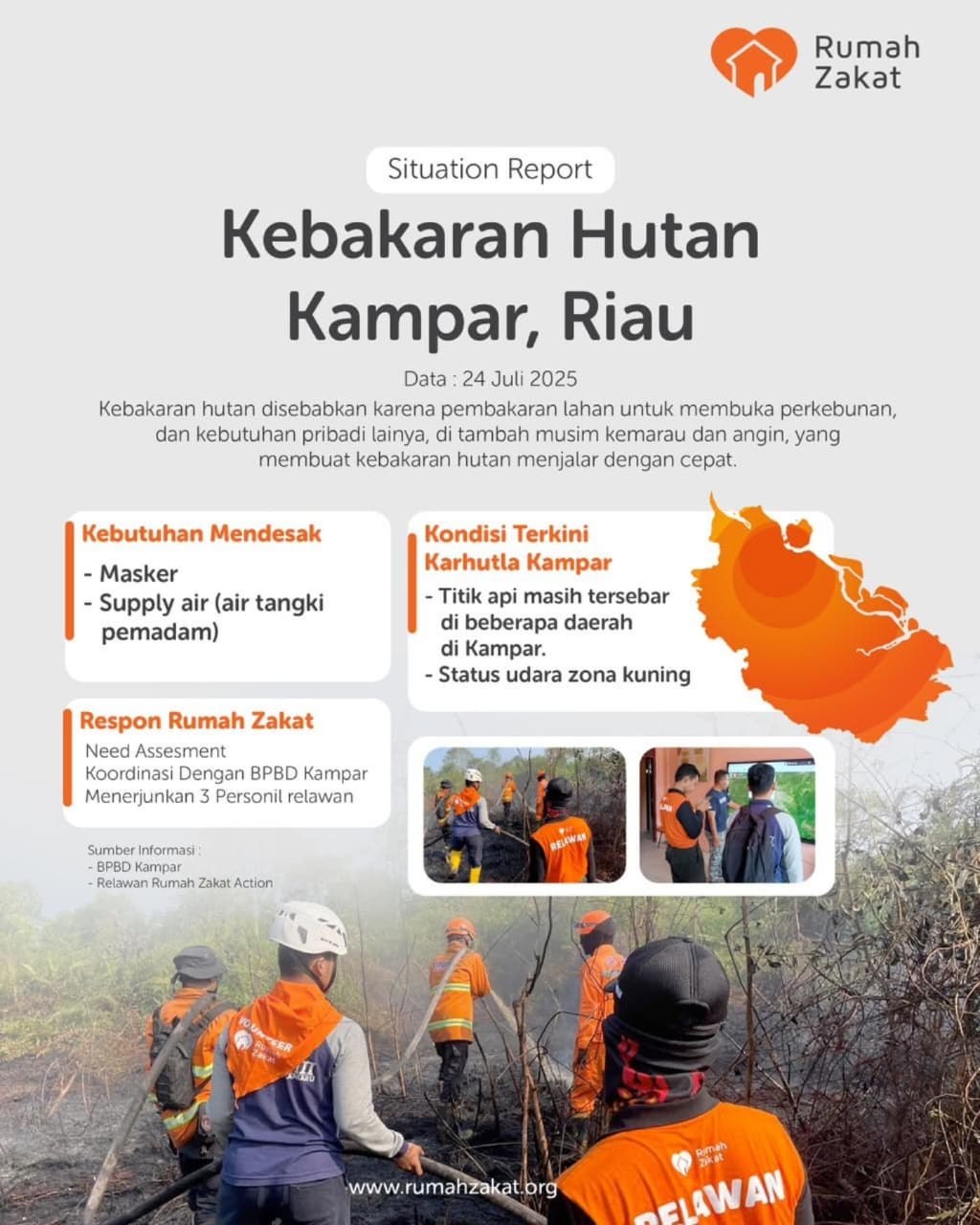 Informasi ini diperoleh dari laporan relawan Rumah Zakat Action dan BPBD Kampar. Masyarakat yang ingin memberikan dukungan atau informasi lebih lanjut dapat menghubungi: