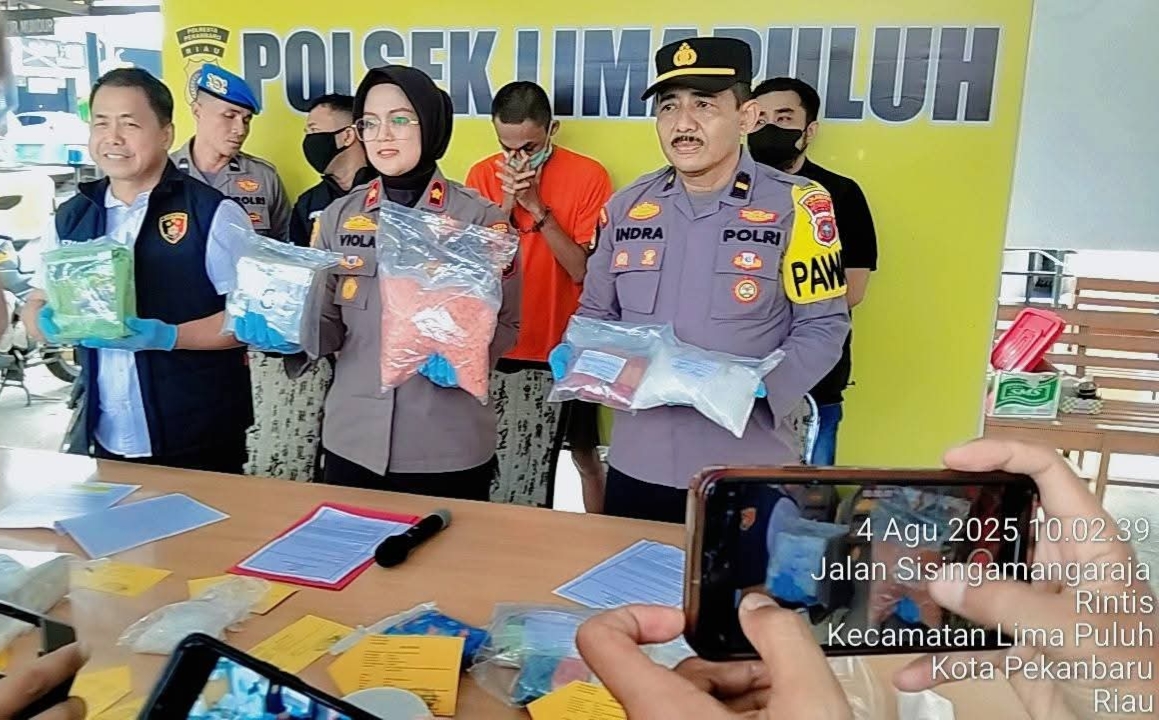 Satuan Reskrim Polsek Limapuluh, Polresta Pekanbaru berhasil mengungkap kasus besar peredaran gelap narkotika dan psikotropika. Hal ini disampaikan dalam konferensi pers yang digelar pada Senin malam (21/07/2025) di Mapolsek Limapuluh.