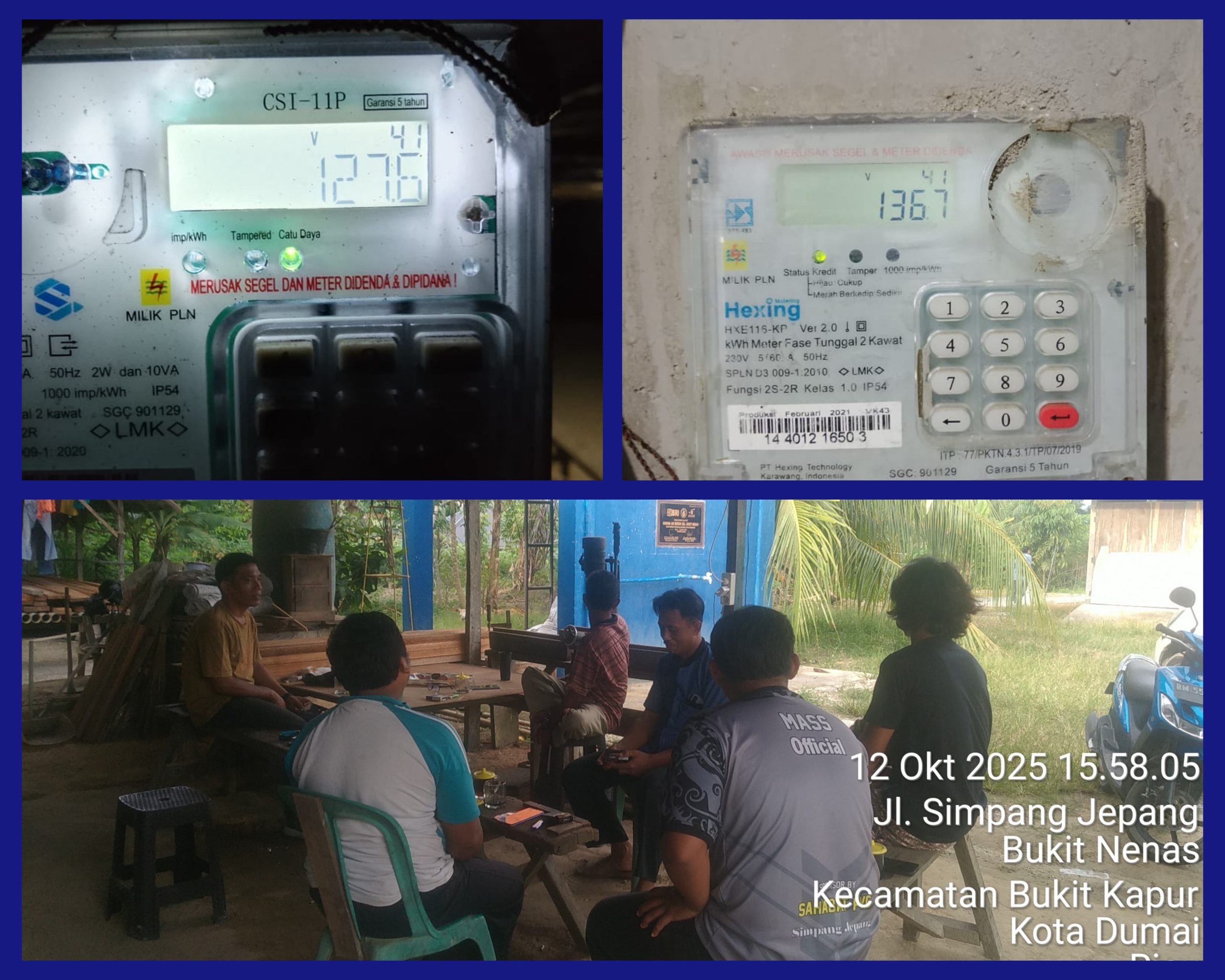 Warga RT.006,RT.007 dan RT.008 Kelurahan Bukit Nenas mengeluhkan penurunan tegangan listrik PLN yang sudah berlangsung 6 bulan belakangan. Andi Saputra, Ketua DPW Gias, melaporkan bahwa tegangan listrik di lingkungan tersebut mencapai 127 Volt, jauh di bawah standar normal.
