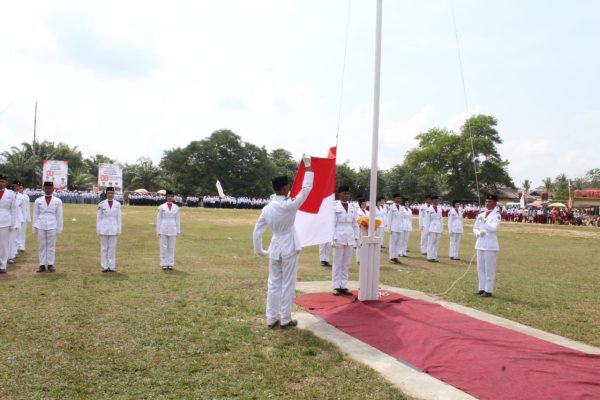 Upacara berlangsung lancar dengan Arip, santri dari Pesantren Alhusna Peranap, bertugas sebagai Komandan Upacara.