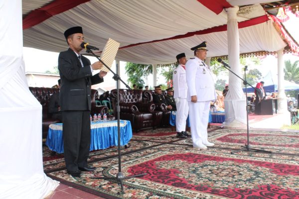 Dalam sambutannya, Camat Peranap Yusri Erdi menyampaikan apresiasi kepada seluruh pihak yang berkontribusi dalam menyukseskan upacara ini.