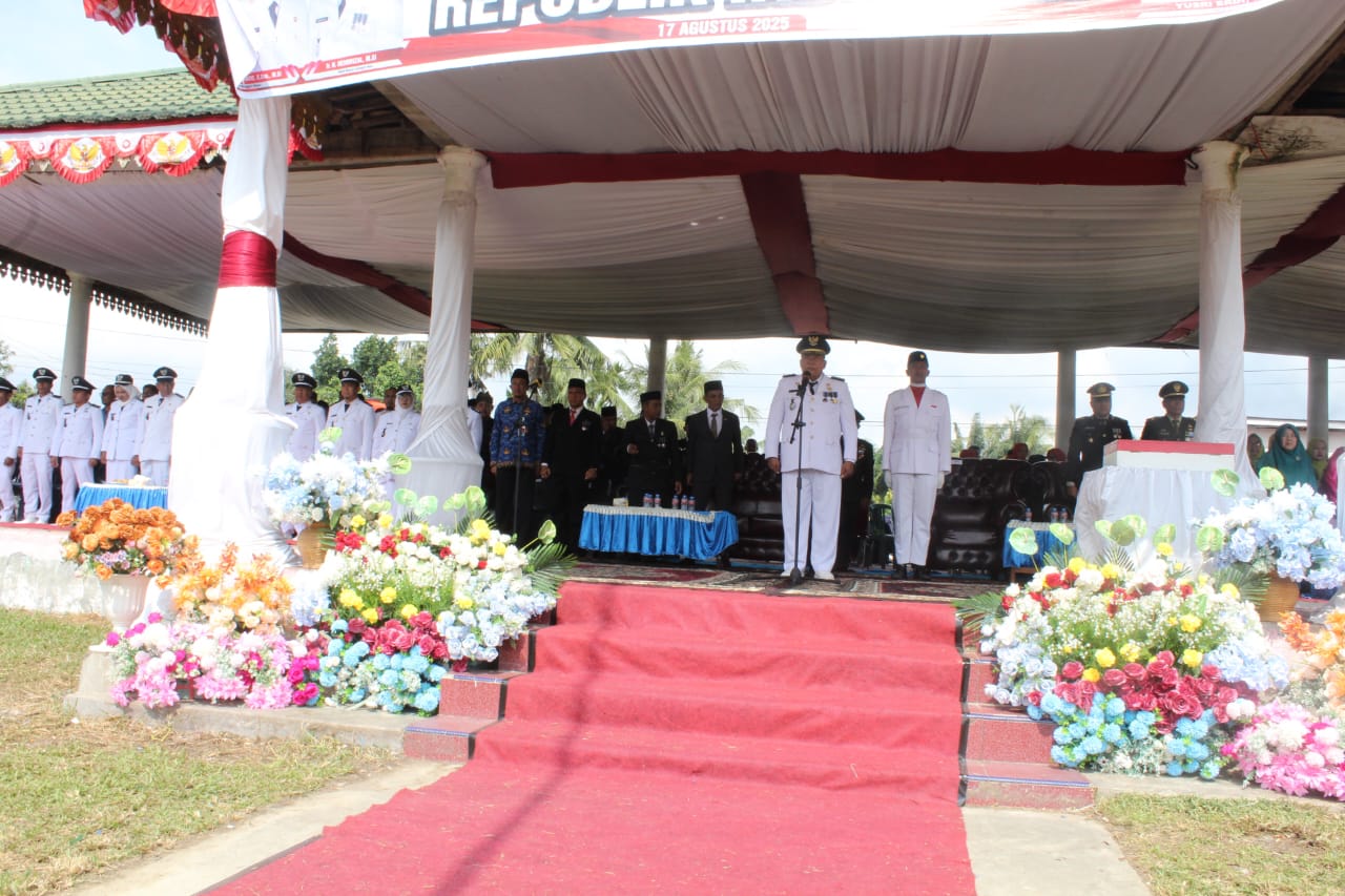 Upacara yang dipusatkan di Lapangan Bola Peranap ini dimulai pukul 07.50 WIB dan diikuti sekitar 500 peserta dari berbagai elemen masyarakat. Suasana khidmat menyelimuti jalannya prosesi, menghadirkan momen haru saat bendera Merah Putih dikibarkan dengan penuh kebanggaan.