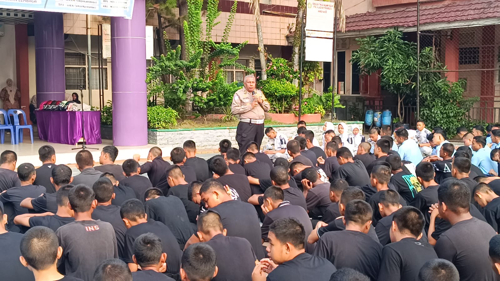 Kegiatan ini mendapat sambutan hangat dari pihak manajemen sekolah dan para siswa-siswi. Suasana penuh semangat terlihat sejak awal acara. Para pelajar tampak antusias mengikuti rangkaian kegiatan yang meliputi penyuluhan keselamatan berlalu lintas, sosialisasi pelaksanaan Operasi Patuh Lancang Kuning 2025, serta penyerahan bibit tanaman kepada Kepala Sekolah sebagai bagian dari program Green Policing.