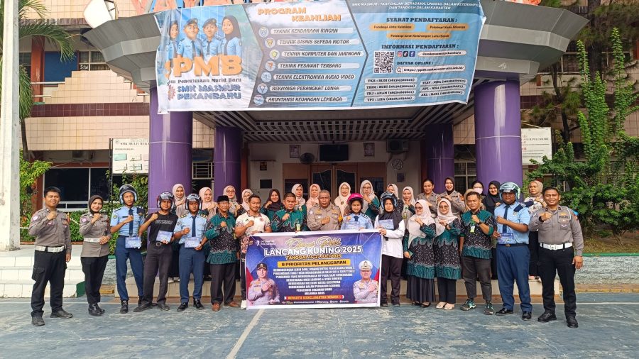 Pekanbaru –Mediaintelkriminal.co.id// Kamis, 24 Juli 2025. Ditlantas Polda Riau melalui Subdit Kamsel melaksanakan kegiatan Police Goes To School di SMK Masmur Pekanbaru, Jalan KH. Ahmad Dahlan. Kegiatan ini bertujuan untuk mensosialisasikan Operasi Patuh Lancang Kuning 2025, sekaligus mengedukasi para pelajar tentang pentingnya keselamatan berlalu lintas serta kepedulian terhadap lingkungan melalui program Green Policing.
