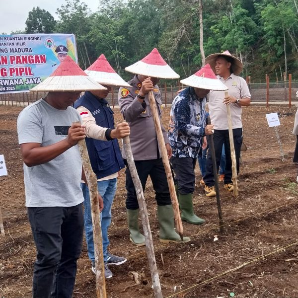 Di Desa Kampung Madura Kecamatan Kuantan Hilir, penanaman jagung pipil juga dilakukan bersama jajaran Forkopimcam. Camat Edison Tuindra S.Pd., M.Si, Kapolsek Kuantan Hilir Iptu Edi Winoto SH MH, BPP Pertanian Masriadi SP, Kepala Desa H. Wiwit Erianto, Direktur BUMDes Arwana Jaya, perangkat desa, tokoh adat dan masyarakat hadir dan memberikan dukungan penuh. Dalam sambutan, BPP Pertanian menegaskan pendampingan teknis akan diberikan hingga panen, sementara Camat Kuantan Hilir mengapresiasi kekompakan semua pihak dalam memperkuat ketahanan pangan desa.