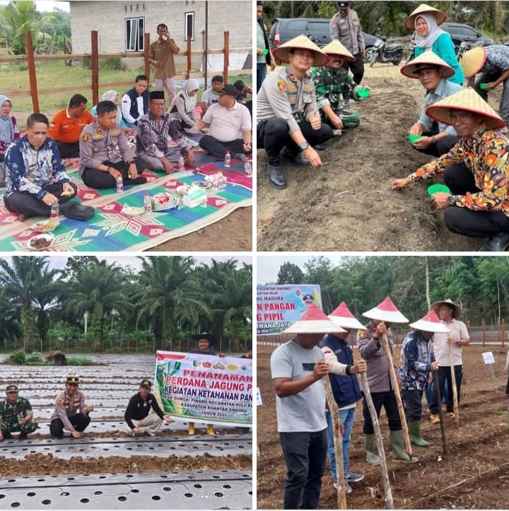 KUANTANSINGINGI,–Intelkriminal.co.id// Polres Kuantan Singingi bersama jajaran Forkopimcam, perangkat desa, BUMDes, kelompok tani, serta masyarakat kembali menunjukkan komitmen kuat mendukung kebijakan nasional ketahanan dan swasembada pangan. Pada Kamis (4/9/2025) kegiatan penanaman jagung pipil digelar serentak di empat kecamatan: Hulu Kuantan, Singingi Hilir, Kuantan Hilir, dan Pucuk Rantau.