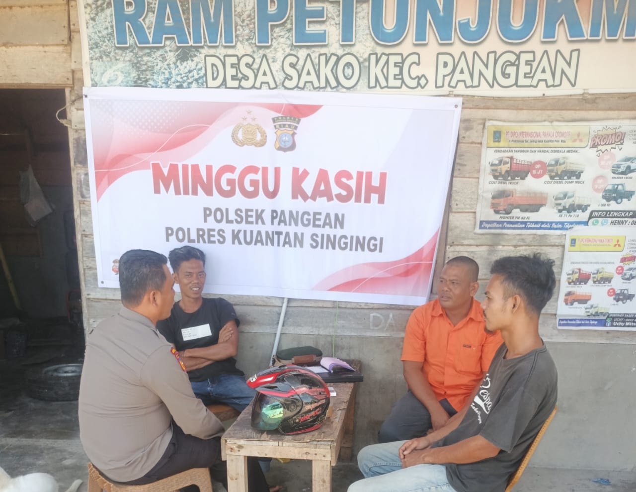 KUANTANSINGINGI,–Intelkriminal.co.od// Dalam upaya mempererat hubungan silaturahmi antara Polri dan masyarakat, Polsek Pangean Polres Kuantan Singingi menggelar kegiatan Minggu Kasih di Desa Sako, Kecamatan Pangean, Kabupaten Kuantan Singingi, pukul 09.30. WIB. Minggu (2/11/2025).