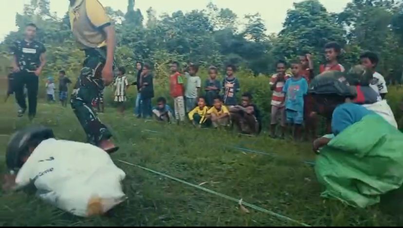Satgas Yonif 763/SBA Gelar Perlombaan Bersama Masyarakat Dengan Penuh Keceriaan