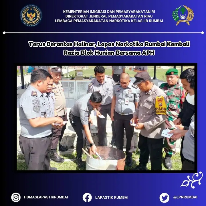 Selanjutnya, Kepala Lapas Narkotika Kelas IIB Rumbai, Reinhards Indra Pitoy menyampaikan apresiasi atas peran aktif APH dalam razia gabungan. “Ini adalah sinergi yang luar biasa di mana rekan-rekan APH selalu hadir di setiap razia. Terima kasih atas bantuannya mewujudkan komitmen Lapas Narkotika Rumbai bersih dari barang-barang terlarang,” ujarnya.